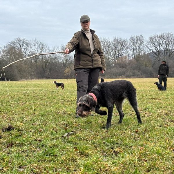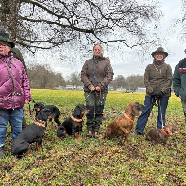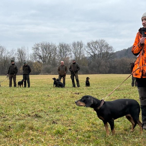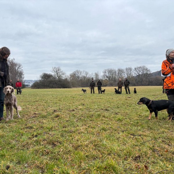 Kurz vor den anstehenden Prüfungen ist dieser Termin für unsere Jagdscheinanwärterinnen und -anwärter stets ein besonderer Höhepunkt. In der direkten Begegnung mit den Hunden erhalten sie die Gelegenheit, verschiedene Jagdhunderassen kennenzulernen und fundierte Informationen zu rassespezifischen Eigenschaften sowie zu den jeweiligen jagdlichen Einsatzbereichen zu gewinnen. So lässt sich das in der Theorie erlernte Wissen anschaulich mit praktischen Eindrücken verknüpfen.