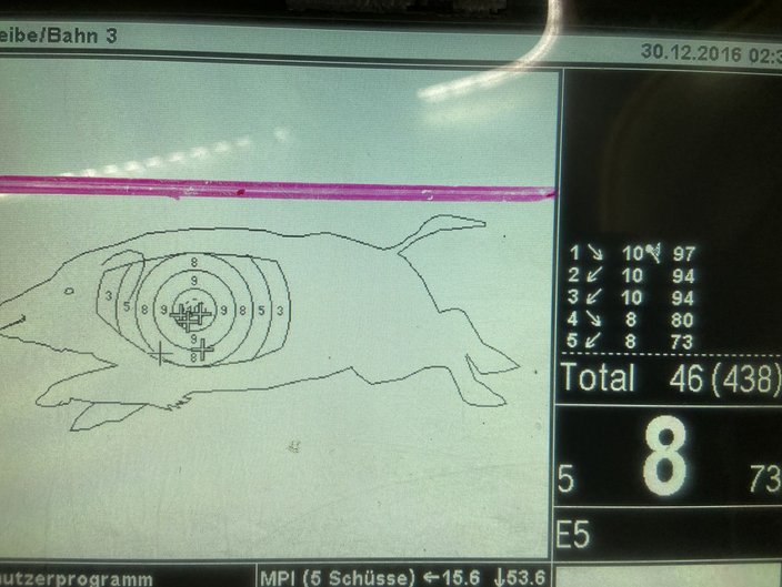 Es wurden einige Keilernadeln und Schießnachweise geschossen. Der Keiler stand während der gesamten Zeit nicht still. Auch beim Kipphasen und auf dem Kurzwaffenstand war reger Betrieb. Die 100m Bahn wurde hauptsächlich für Kontrollschüsse vor dem Hintergrund der aufgehenden Bockjagd und vereinzelt auch zum Einschießen der neuen Jagdoptik verwendet.