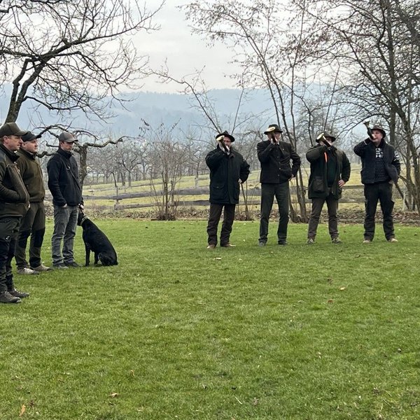 Mitglieder des Bläsercorps der KJV umrahmten stimmungsvoll den Morgen. Es kamen auch Anfragen von Mitgliedern ohne feste Jagdgelegenheit bzw. von welchen, die gerne die Tradition der Fuchswoche miterleben wollten. Besonders erfreulich: alle konnte während der Woche als Jagdgäste integriert werden.