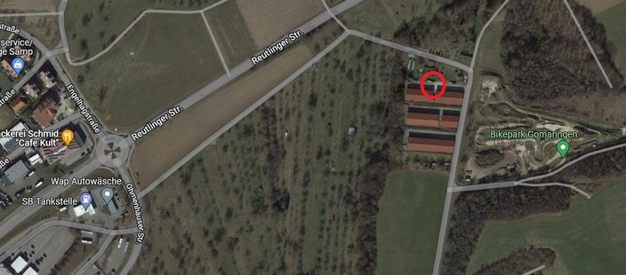 Deshalb treffen wir uns ab 20:00h am Donnerstag, den 10.07.2025 an der Schuppenanlage beim Bikepark in Gomaringen, s. Luftbild.