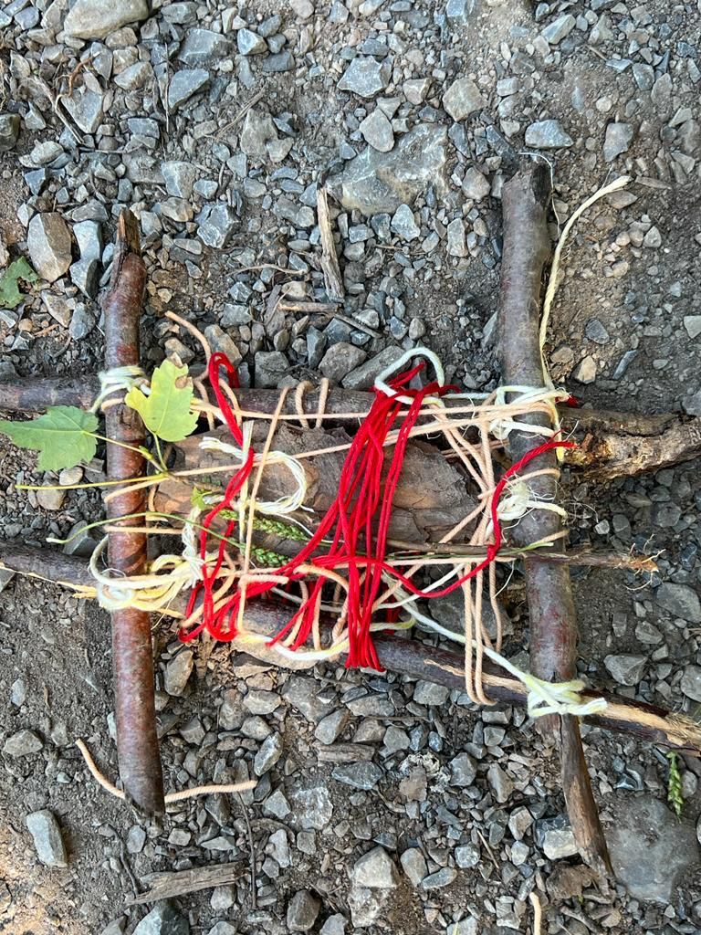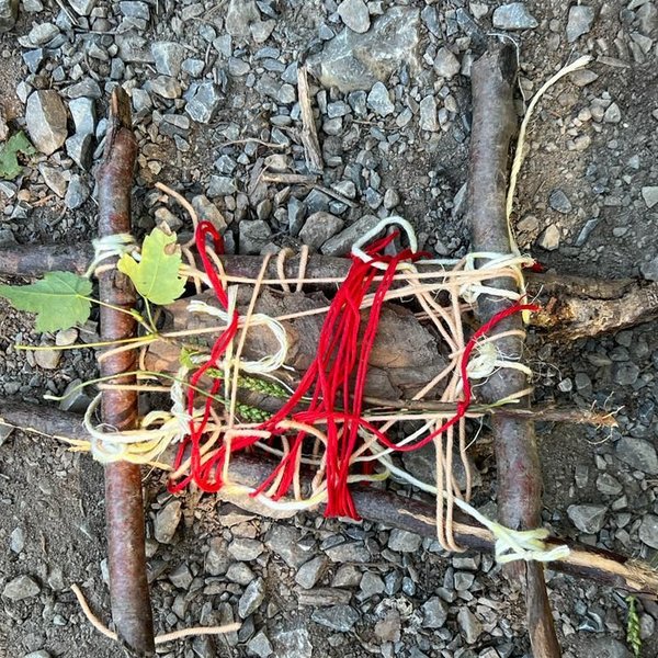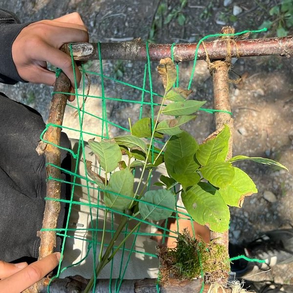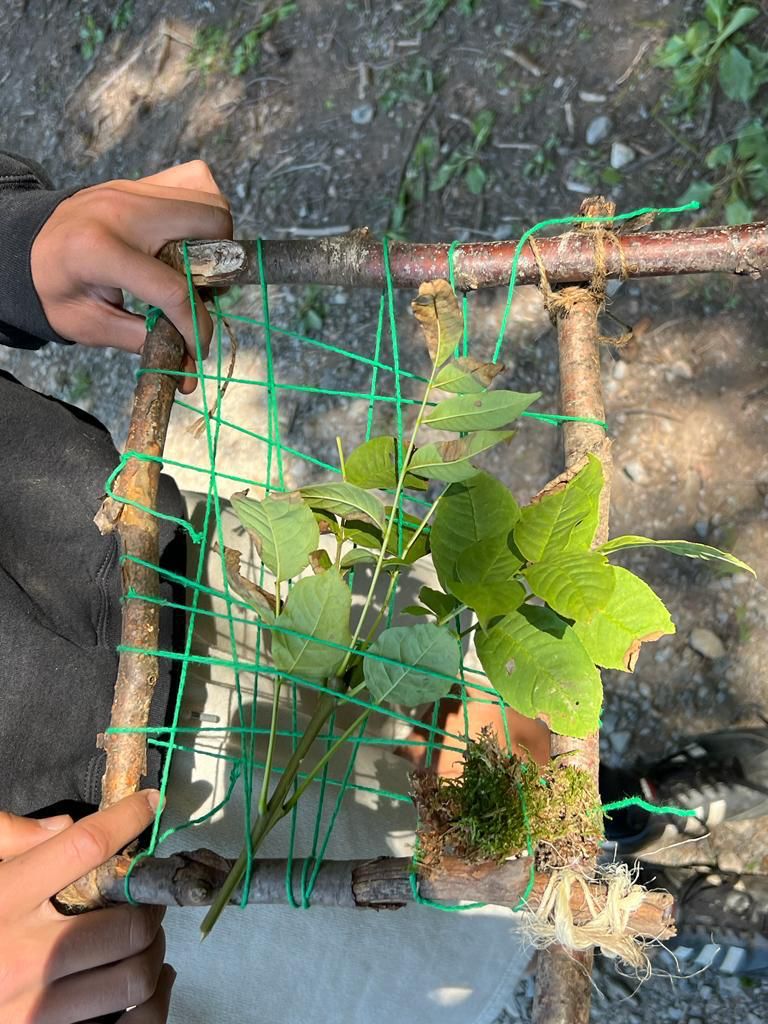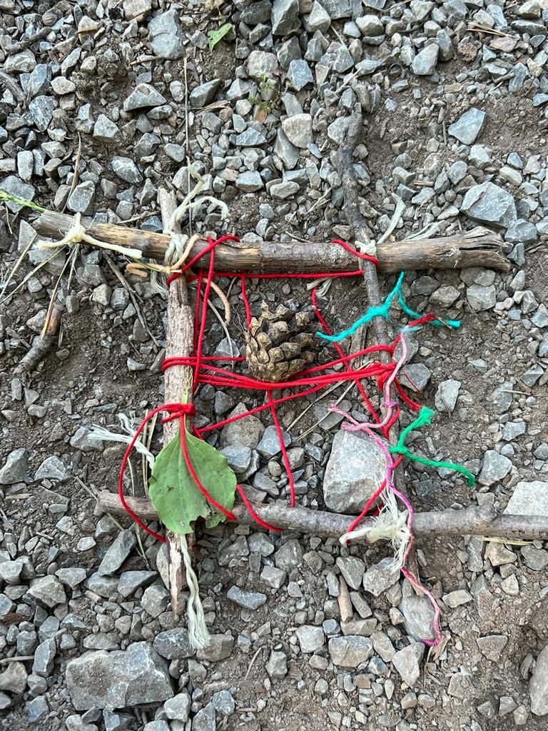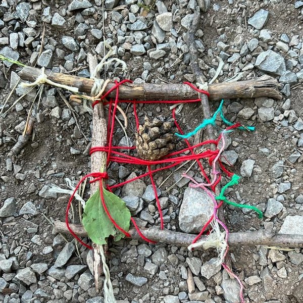 Kaum im Wald angekommen, lernen die Kinder mit Ästen, Stöcken, Zapfen und Moos, wie Waldsofas gebaut werden und schaffen Kunst aus Natur in der Natur.