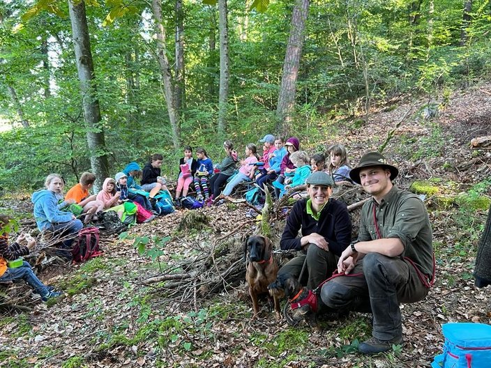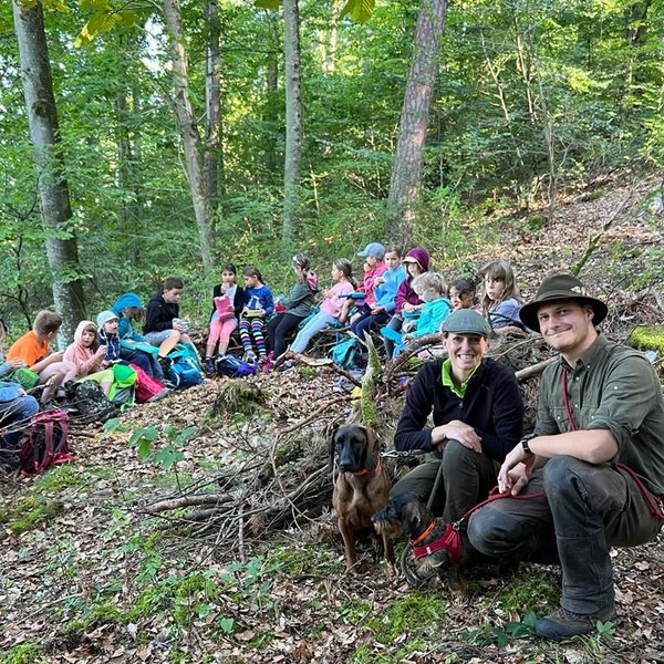 Die Betreuer können sich der vielen kaum Fragen erwehren. Sie erläutern wie Hunde dem Jäger helfen Wild zu finden und dass sie unbedingt zur Jagd gebraucht werden. Auch die Frage, warum es Jäger braucht, können die Experten leicht beantworten: Die Jagd sorgt für einen ausgewogenen Wildbestand und sichert damit die Artenvielfalt von Pflanzen und Tieren im Wald und in der Feldflur.