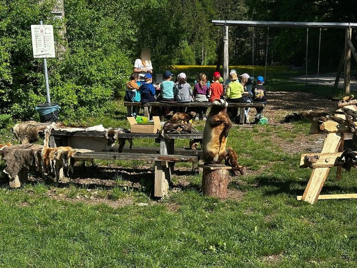 Mit dabei waren Jagdhornklänge, viele spannende Tierpräparate und die kleine Münsterländerhündin Dori, die die Herzen der Kinder im Sturm eroberte. Spielerisch und mit allen Sinnen erlebten die Kinder die Natur – es wurde gesehen, gehört, gefühlt und vor allem: viel verstanden und „begriffen“.