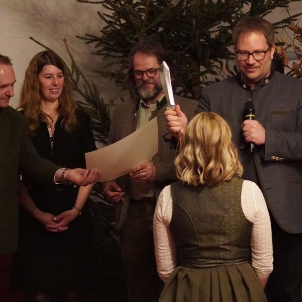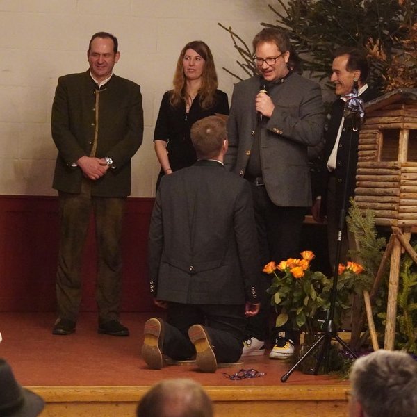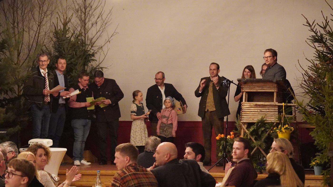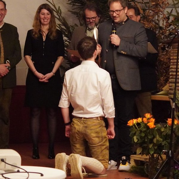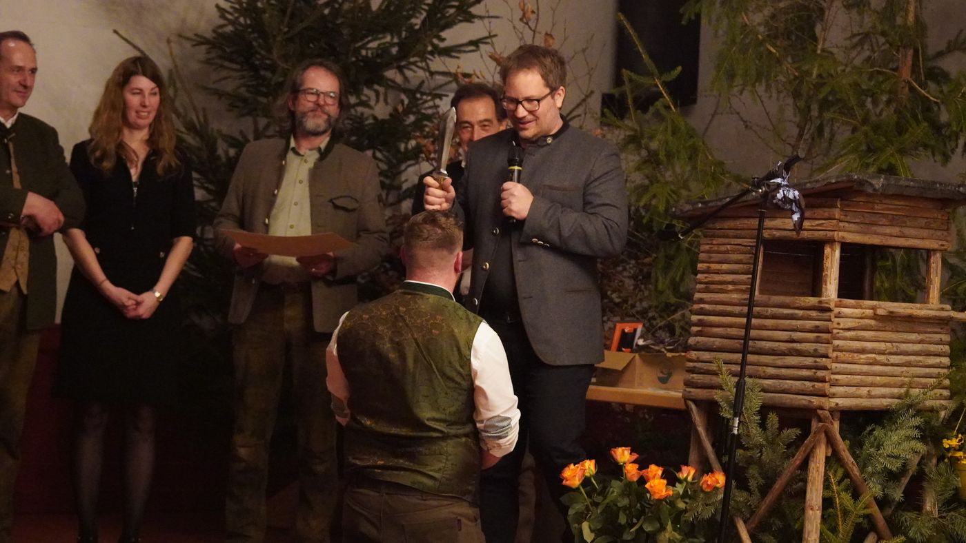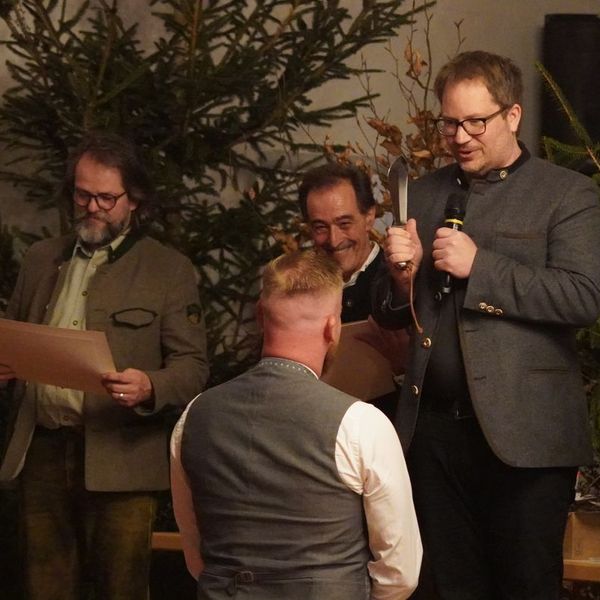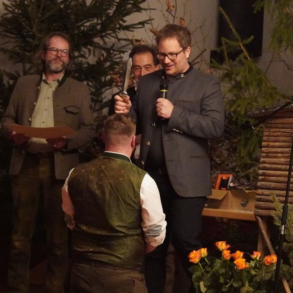 Der Saal war bis auf den letzten Platz belegt, als der traditionelle Jägerschlag zelebriert wurde und der Stolz war in jedem Gesicht zu sehen - Jungjäger*nnen, Freundinnen und Freunde und Angehörige. Es wurden auch dieses Jahr großzügige Jagdmöglichkeiten durch Gönner der Kreisjägervereinigung Tübingen ermöglicht, so dass der KJM und Lehrgangsleiter Ulrich Maurer gemeinsam die tollen Preise an die glücklichen Gewinnerinnen und Gewinner überreichen konnten.