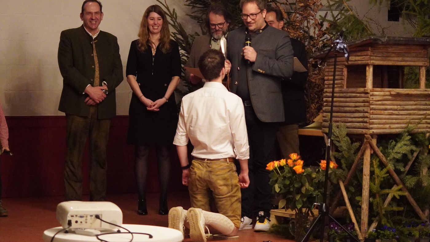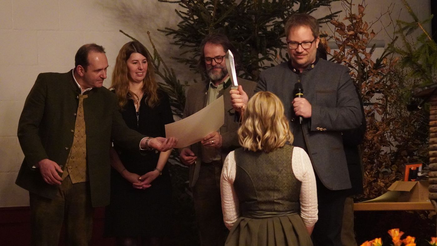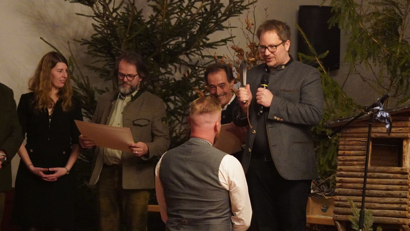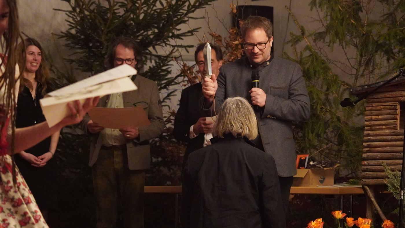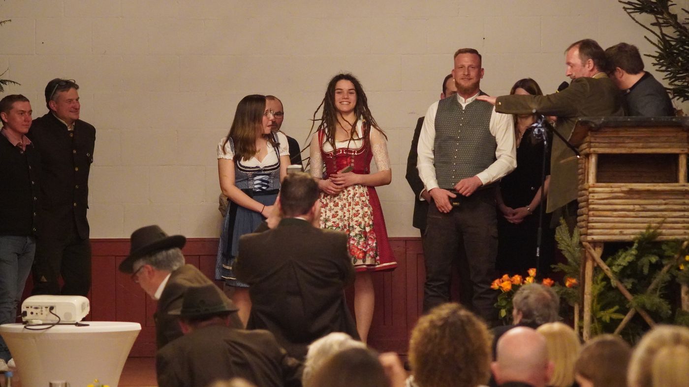 Der Saal war bis auf den letzten Platz belegt, als der traditionelle Jägerschlag zelebriert wurde und der Stolz war in jedem Gesicht zu sehen - Jungjäger*nnen, Freundinnen und Freunde und Angehörige. Es wurden auch dieses Jahr großzügige Jagdmöglichkeiten durch Gönner der Kreisjägervereinigung Tübingen ermöglicht, so dass der KJM und Lehrgangsleiter Ulrich Maurer gemeinsam die tollen Preise an die glücklichen Gewinnerinnen und Gewinner überreichen konnten.