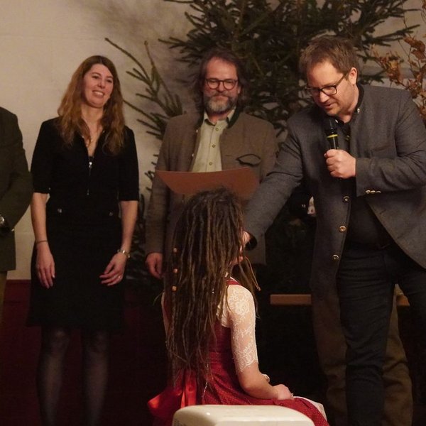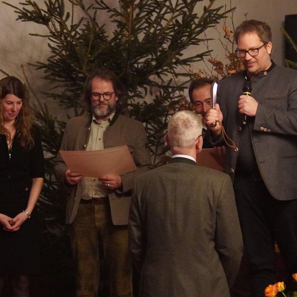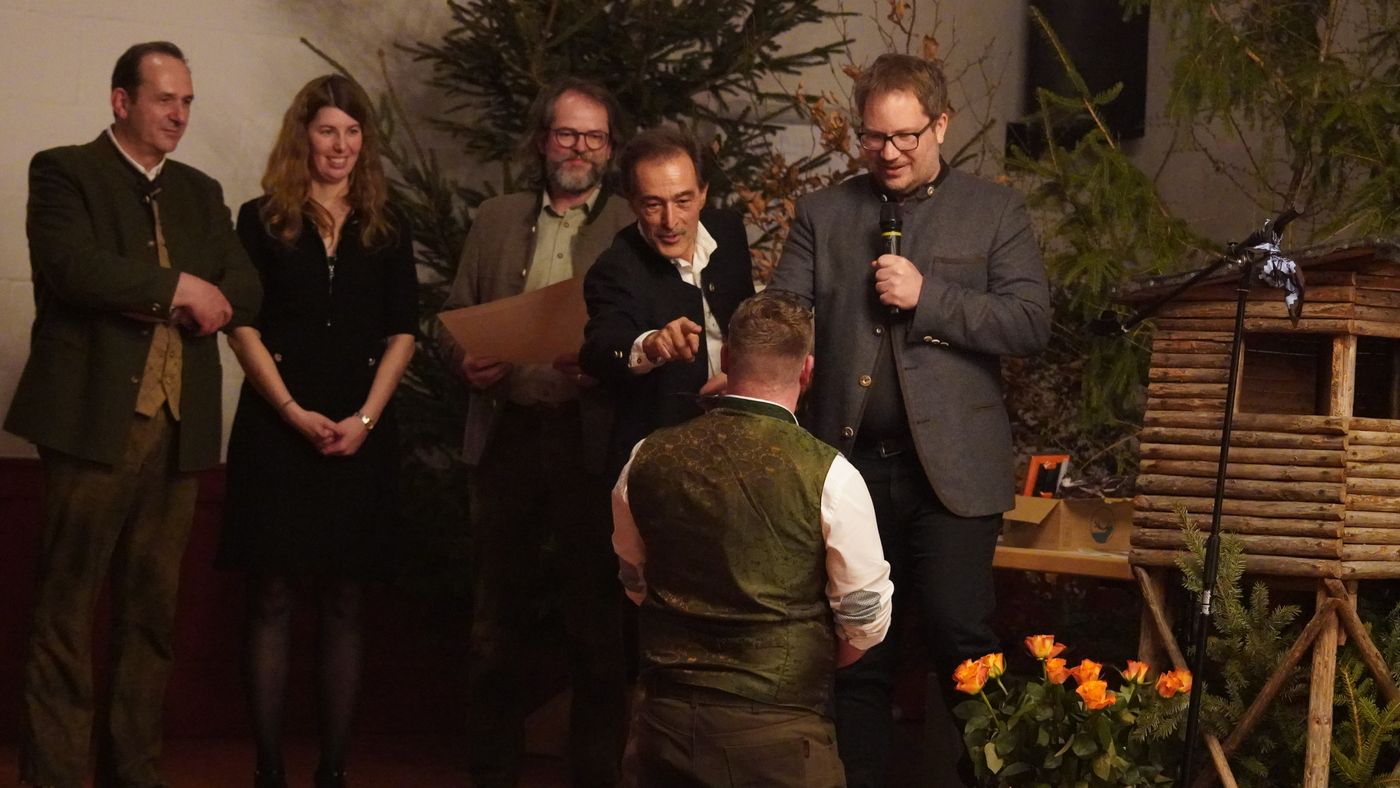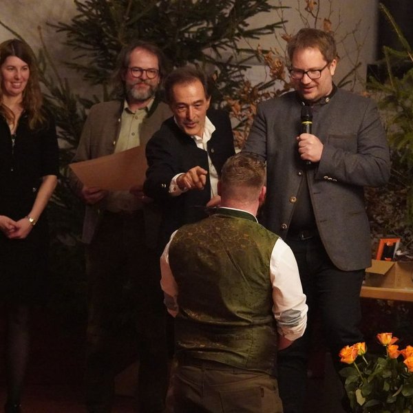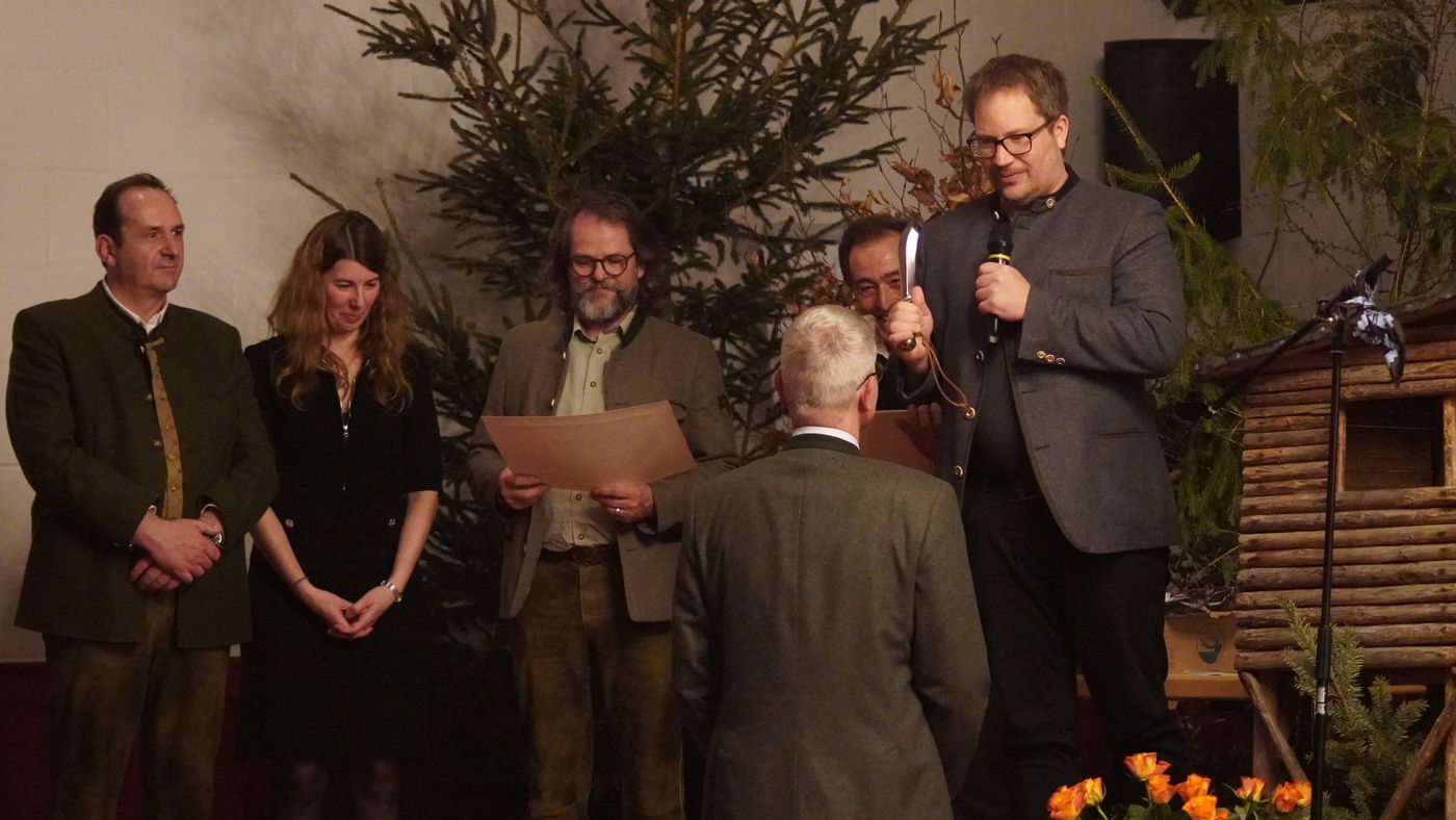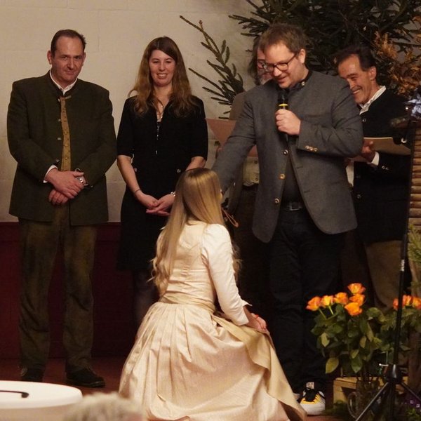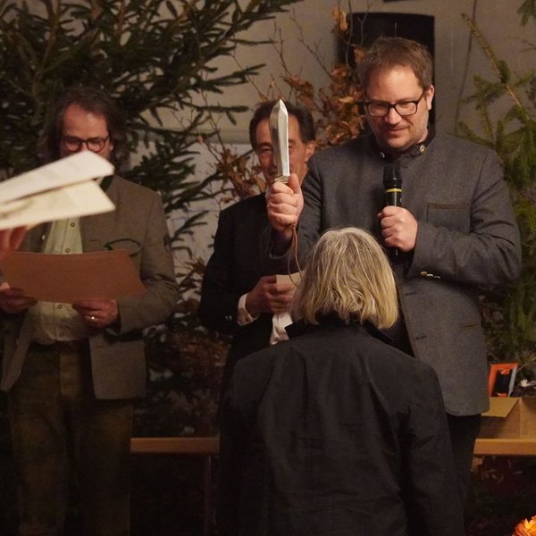 Der Saal war bis auf den letzten Platz belegt, als der traditionelle Jägerschlag zelebriert wurde und der Stolz war in jedem Gesicht zu sehen - Jungjäger*nnen, Freundinnen und Freunde und Angehörige. Es wurden auch dieses Jahr großzügige Jagdmöglichkeiten durch Gönner der Kreisjägervereinigung Tübingen ermöglicht, so dass der KJM und Lehrgangsleiter Ulrich Maurer gemeinsam die tollen Preise an die glücklichen Gewinnerinnen und Gewinner überreichen konnten.