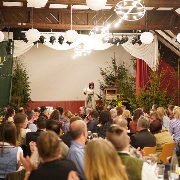 Auch dieses Jahr führte Bernhard Herrmann in besonders unterhaltsamer Weise durch die Veranstaltung, so dass er sicher als ein unvergessliches Ereignis in den Gedanken aller bleiben wird. Auch das ist eine Öffentlichkeitsarbeit für die Jagd, da durch den Abend sich auch Angehörige und Freunde der Jungjäger*nnen mit dem Thema Jagd und Wild auseinandersetzen.
