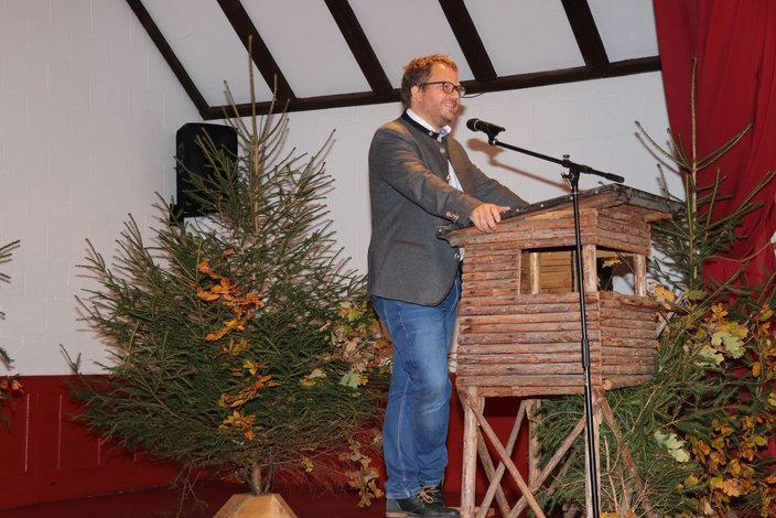 Danach war Zeit für den vergnüglichen Teil des Abends: Uli Maurer holte Versäumnisse aus dem Jagdkurs bezüglich der Jagdsprache in einem Gedicht nach und bedachte auch die jeweiligen Partnerinnen und Partner der Frischlinge mit einem passenden Gedicht, in dem sie auf das Jägerleben vorbereitet wurden. Manch eine(r) hätte vermutlich die Zustimmung zur Kursteilnahme verweigert, wenn sie das Gedicht vorher gekannt hätten. Anschließend bedankte sich der Kurssprecher der Jungjäger in seiner Ansprache bei Uli Maurer und seiner Frau Birgit sowie bei allen Ausbildern und Prüferinnen und überreichte im Namen des Kurses Präsente.
