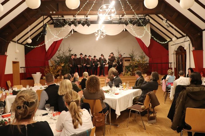 Im Anschluss dankte Kursleiter Uli Maurer zunächst dem Jagdkurs für das festliche Schmücken des Schlosssaales und nahm zugleich das Versprechen ab, die Aufgabe wieder für das nächste Jahr zu übernehmen, wie es vor Corona die Tradition war. Vor Beginn des offiziellen Programmteiles konnten sich die Anwesenden dann an einem leckeren Buffet (mit Schwarzwild, wie Uli Maurer betonte) stärken.